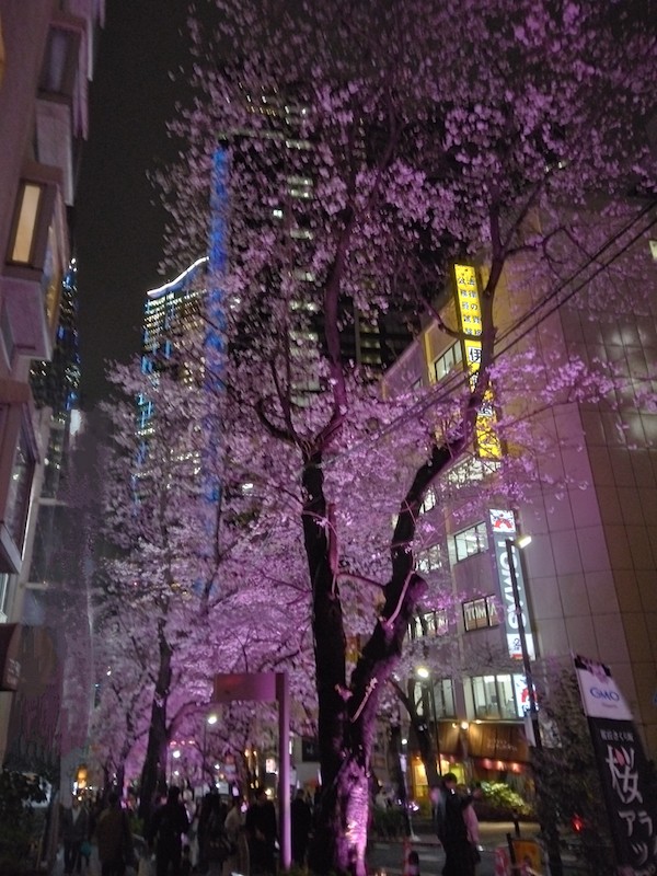 桜満開・ライトアップ・ビルのライトも一緒で・・・綺麗ですね〜
