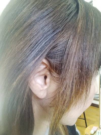 黒髪の黒い部分の色を脱いて、、、脱色して色を入れたりするんですが、、